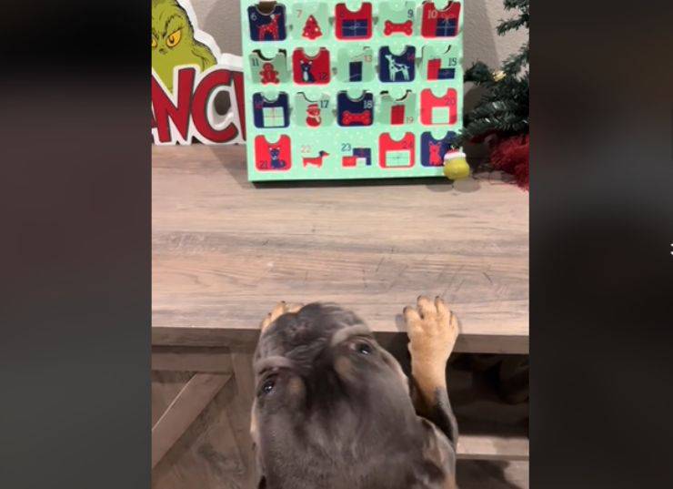 Il calendario dell’Avvento, un calendario che tiene il conto dei giorni durante l’Avvento (che precedono quindi il Natale), è in genere realizzato per i bambini. A seconda del modelli, in ogni casella del calendario, che corrisponde a un giorno, è presente una piccola sorpresa, un bigliettino o un dolcetto. La proprietaria di Kash ha acquistato un calendario pensato appositamente per i cani. In ogni casella è presente un biscotto per cani dalla forma natalizia.