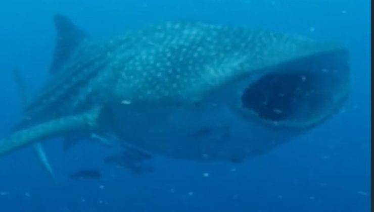 Un video mostra un maestoso esemplare di squalo balena mentre nuota nelle profondità del mare: questa specie di pesci è la più grande al mondo.