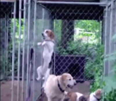 Alcuni cani sembrano davvero avere una marcia in più o piuttosto un talento innato nell’arte della fuga a differenza di altri loro simili. Si tratta di veri e propri “maestri” che riescono come per magia a scappare da qualsiasi luogo in cui si trovano. Molte volte, alcuni proprietari ricorrono a qualsiasi espediente per poter mettere in sicurezza fido che non si come troveranno sempre all’esterno del cancello. Non è sempre colpa del padrone. Infatti, come viene mostrato un questo simpaticissimo video, ripreso con una telecamera nascosta, possiamo vedere un adorabile beagle che si arrampica come un gatto sulla rete di un box.