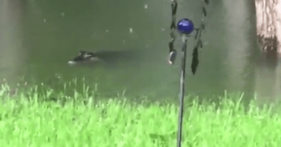 Il giardino della sua abitazione è totalmente sommerso, al punto tale che dal nulla è spuntato un enorme esemplare di alligatore. Arlene ha ripreso il tutto con lo smartphone, postando poi il video sul web. Nelle immagini è possibile vedere l’alligatore nuotare placidamente a pochi metri da lei. E ben presto a raggiungerlo arriva un altro rettile. La stessa Arlene ha anche fatto sapere che non ci sono stati soltanto avvistamenti di alligatori. Lei ed altre persone ad esempio hanno notato anche diversi esemplari di serpenti. Che ad Arlene fanno più paura, per sua stessa ammissione.