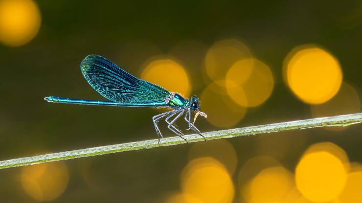 Gli occhi della libellula, sono composti da più di 30.000 fotorecettori chiamati omatidi, che le permettono di avere una vista molto acuta, sensibile al movimento.