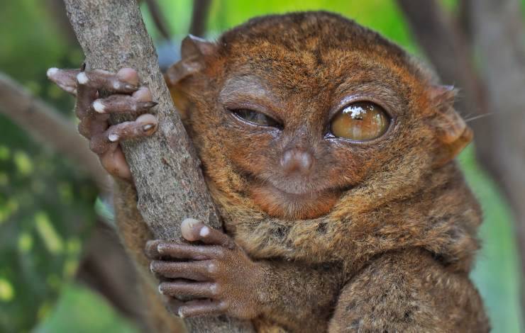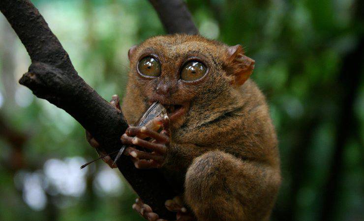 La caratteristica principale del tarsio è la grandezza dei suoi enormi occhi, sproporzionati rispetto al corpo.