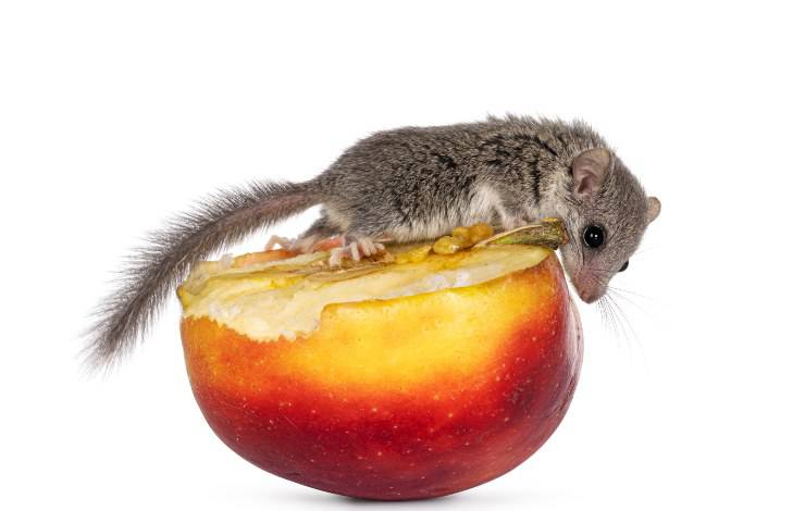 Perciò, al minighiro allevato in casa, è necessario somministrare frutta (banane, mele, uva, albicocche, pere), insetti (grilli o camole del miele, a giorni alterni per evitare l’obesità), biscotti ai cereali per bambini, crocchette per gatti, semi misti per criceti.