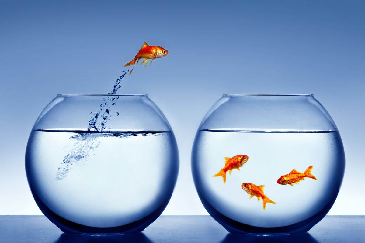E’ inoltre possibile che il pesce femmina (sapresti distinguere il pesce rosso maschio dalla femmina?) voglia uscire dall’acqua per sfuggire alla pressante insistenza del pesce maschio, nel periodo della riproduzione dei pesci rossi. E se davvero riuscisse a saltare fuori dall’acquario? Niente paura, basterà rimetterlo dentro l’acqua e non farlo stare all’esterno per più di un’ora (a meno che non presenti segnali di salute allarmanti, come lesioni, occhi grigi e infossati e squame molto secche).