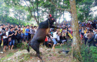 Appuntamenti annuali che si registrano un po’ in tutte le stagioni e che come sempre, indignano gli animalisti e sollevano non poche polemiche. Tra queste ricorrenze, in Cina, l’etnia Dong, originaria nel sud del paese, da ormai 470 anni, celebra il festival della Fortuna nell’ambito del quale viene sacrificato un toro, appeso ad un albero dove viene lasciato morire. Prima della sua condanna, l’animale è accuratamente ornato di fiori e abbellito. Un rituale per la buona sorte, il bel tempo, un raccolto pieno, per la pace e la prosperità.