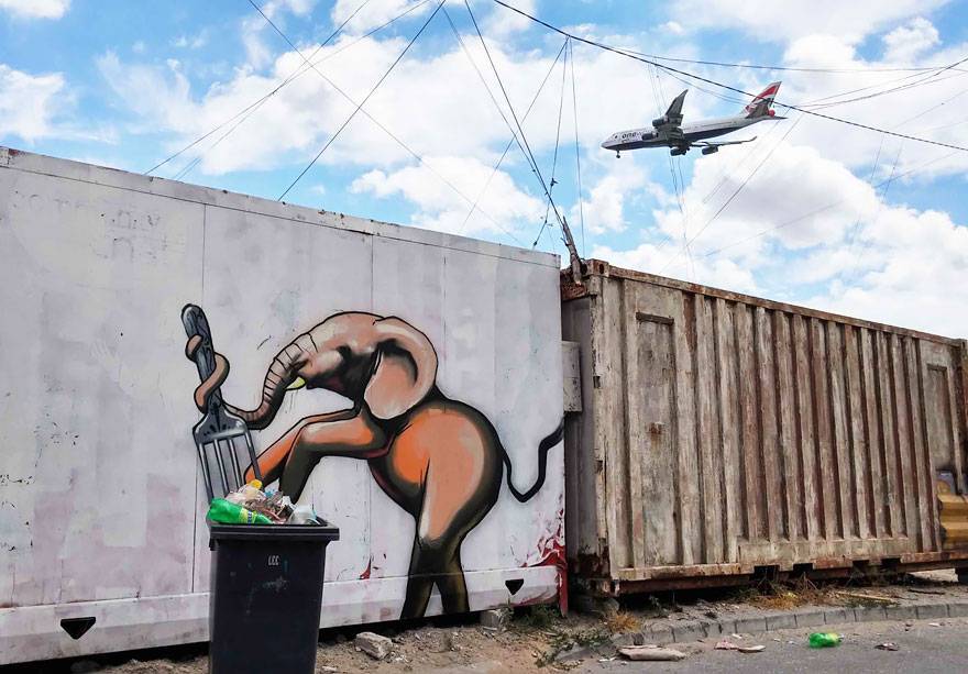 Johannesburg in Sud Africa si trasforma nel palcoscenico dello street artista Falko che, in occasione di una mostra organizzata con la Grayscale Store & Gallery fino al 31 maggio 2016, ha realizzato una serie esclusiva di pitture murali dedicata agli elefanti.