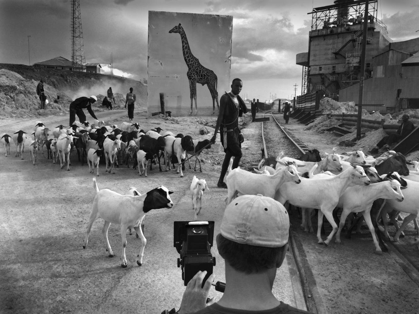 Il fotografo in alcuni scorci ha installato delle gigantografie che rappresentano diversi esemplari di animali africani, come rinoceronti giraffe, scimpanzé, leoni e rinoceronti, tutte specie minacciate di estinzione.