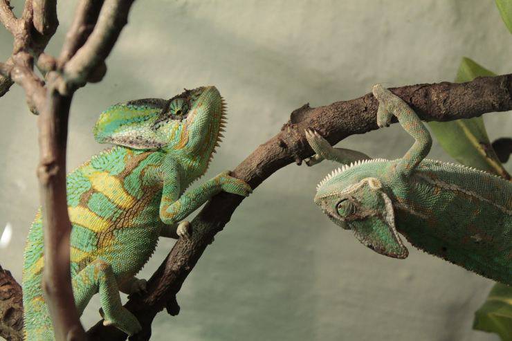 Ma è importante che i rettili abbiano accesso alle aree calde dove “prendono il sole” e alle zone più fredde dell’ombra. Inoltre devono avere i diversi stadi di temperatura il giorno e la notte. Il camaleonte deve essere esposto quotidianamente alla luce UVA e UVB, nonché ai cicli di luce diurna e notturna.