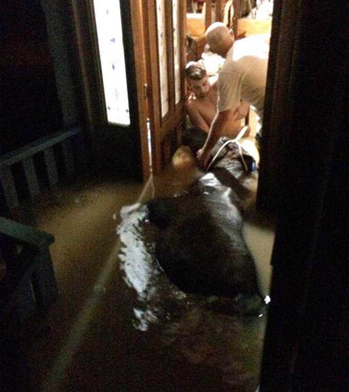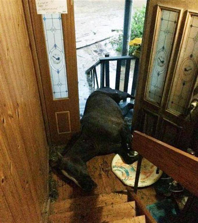 Con loro è andato anche il giovane figlio Rob. Appena usciti di casa i tre hanno visto la cavalla che stava annegando, stremata e senza forze. Non lottava neanche per cercare di salvare se stessa. Subito padre e figlio hanno preso una corda cingendo il corpo dell’animale per trascinarlo sul retro della loro abitazione, ma tutto era reso maledettamente complicato dal terreno fangoso e dall’acqua che era ovunque. La cavalla a quel punto si era ulteriormente spaventata, tanto da fare ritorno dove era stata soccorsa.