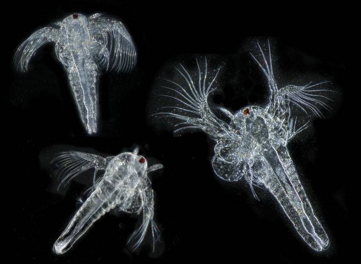 - Krill antartico: crostaceo con un ruolo fondamentale nella catena alimentare antartica, poiché è costituisce la base dell’alimentazione di animali predatori quali foche, pinguini e uccelli. I suoi organi emanano una luce giallo-verde per pochi secondi: probabilmente usa questa capacità come arma di difesa contro i predatori marini, confondendoli con i riflessi di luce del cielo e del ghiaccio.