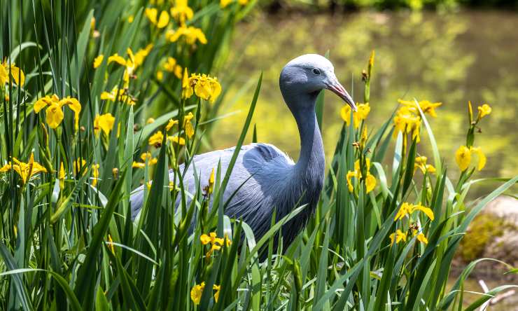 Gru del paradiso o gru blu, tra le specie di uccelli più rari con cui molte persone amano abbellire il loro giardino.