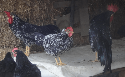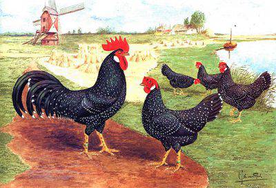 La razza Ancona è originaria dell’Italia centrale. Importata in Inghilterra intorno al 1848, dal porto di Ancona appunto, fu qui sottoposta ad una attenta selezione soprattutto per ottenere una colorazione con picchiettatura regolare. Si tratta di una razza mediterranea, quindi leggera, elegante e ottima produttrice di uova bianche. L’Ancona ha una forma e corporatura identiche alla Livorno, e se ne differenzia solo per la colorazione nera picchiettata di bianco, assente nell’altra razza. lo standard autoctono di una volta prevedeva penne bianche irregolarmente disposte. Solo nel 1880 Mr. M. Cobb riuscì ad ottenere quanto ricercato presentando in mostra un gruppo di Ancona. Nel 1910 in una mostra a Birmingham fu presentata l’Ancona con cresta a rosa.