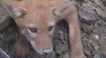 Un povero cucciolo di coyote è rimasto incastrato nella tana, poi liberato da alcuni operai che hanno sentito il suoi…