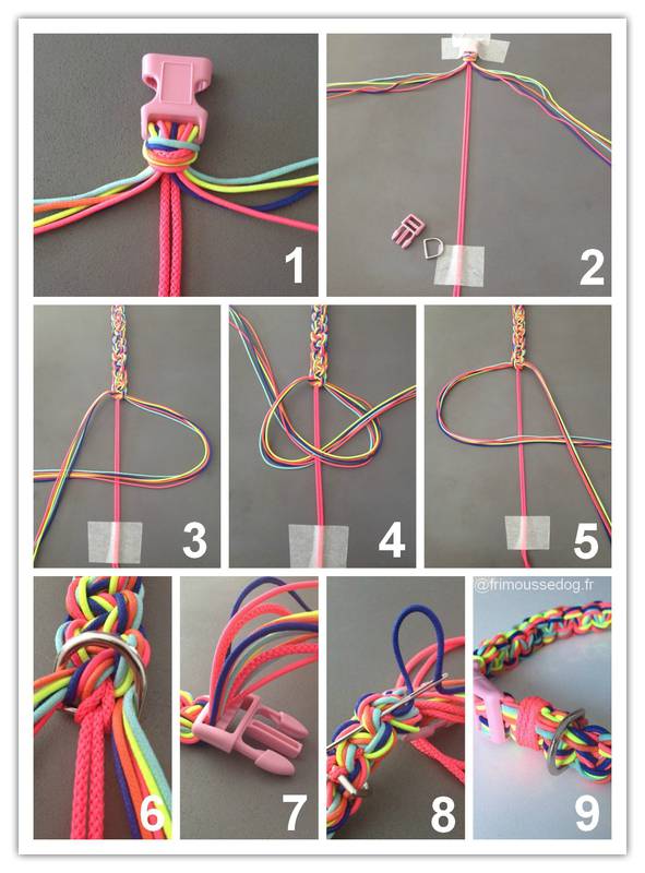 Basta veramente poco per creare un bel collarino colorato per fido. Diverse corde e un paio di forbici.