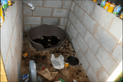 Un allevatore serio e responsabile, che ha in mente l’interesse dei suoi acquirenti e dei cuccioli, sarà felice di far visitare il proprio allevamento alle nuove famiglie. Qui si parla di veri e propri inferni lager, Ambienti sporchi malsani addirittura le feci in decomposizioni con muffa. Ciotole di vario genere sporche e prive di acqua pulita senza cibo adeguato. Le cucce dove dormivano intrise di urina e di feci piene di batteri assolutamente indegne. Erano tenuti prigionieri nello scantinato di casa senza il minimo spiraglio di luce solare. Questi cani non uscivano mai non erano mai stati portati fuori a fare una passeggiata. Sono stati rinchiusi per anni obbligati a riprodursi e a sfornare cuccioli.