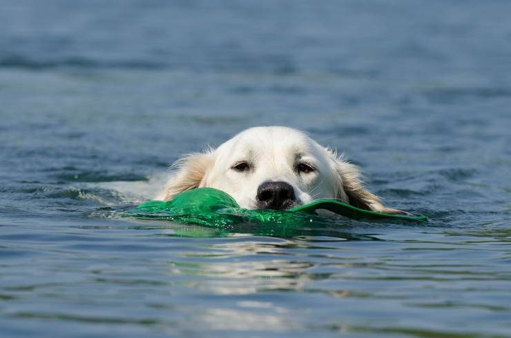 - aiutarsi con un oggetto che il cane deve recuperare, lanciandolo prima a riva e poi pian piano sempre a maggiore distanza;