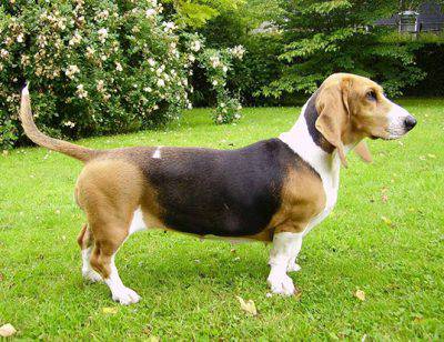 CARATTERISTICHE MORFOLOGICHE: È il cugino più snello del Bassethound, ma non ha caratteri così esasperati. Il corpo è lungo e basso sugli arti, che possono essere arcuati o semiarcuati. La testa, a forma di cupola, ha guance formate solo dalla pelle, con una o due pliche; nel suo insieme la testa ha un aspetto scarno. Gli occhi sono grandi e scuri, con sguardo calmo e serio; talora può essere visibile il rosso della palpebra inferiore. Le orecchie sono attaccate basse, ben conformate a spirale, molto lunghe (almeno quanto il muso) e terminanti a punta. Il collo presenta un po’ di giogaia, ma senza esagerazione. La coda è piuttosto lunga: larga alla base, si assottiglia verso l’estremità. Pelo: corto. Colore: tricolore (nero, fulvo e bianco) o bianco e fulvo. Taglia: 26-36 cm, uguale per maschi e femmine.