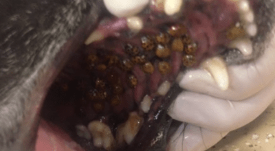 “Non condivido la fotografia per spaventare, ma per dare ai proprietari di cani sufficienti informazioni per essere in grado di reagire se improvvisamente scoprono che il loro cane sbava tanto e ha la schiuma alla bocca”, commentò il veterinario, pubblicando le immagini shoccanti del palato di Bailey. Il veterinario spiegò anche come, le coccinelle possono causare danni alle mucose o ai denti dell’animale se trascurate.