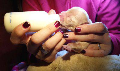 Per quanto riguarda il quantitativo di latte da somministrare, la regola è 20 ml ogni 100 grammi di peso, che possono diventare 25 dopo i primi 20 giorni di vita; il peso va calcolato precisamente ogni giorno con la bilancia per gli alimenti. Anche se di solito un cucciolo si scanserà da se dalla tettarella appena si sente sazio. Se stiamo facendo tutto bene, di giorno in giorno il cagnolino peserà il 15% in più rispetto al giorno precedente, indice di crescita sana e senza problemi.
