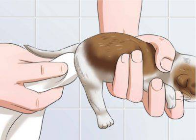 •La prima cosa che faremo sarà misurare la temperatura. Un cucciolo ipotermico non avrà le energie necessarie per prendere il latte ne per compiere atti respiratori. Misuriamola subito con un termometro per neonati umani. La temperatura rettale normale per un cucciolo appena nato va dai 35 ai 37,2 gradi: nella seconda settimana passa a 36-37,7, mentre alla quarta settimana dovrebbe raggiungere la temperatura normale di un cane adulto (da 38 a 38,8 gradi). Se è inferiore a questi limiti, il cucciolo è in ipotermia e bisogna riscaldarlo. Ricordatevi che un cane soprattutto un cucciolo non è in grado di regolare la propria temperatura corporea e che brucia molto più rapidamente di un cane adulto per questa bisogno della presenza della madre di apposite lampade a luce rossa (ma rischiose e sopratutto dispendiose) o meglio ancora di una borsa dell’acqua calda alla base della cuccia.