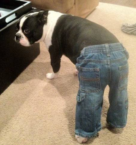 Sembra una domanda banale ma che in realtà da una settimana sta mettendo in crisi i social con tanto di fotografia corredata condivisi anche su Twitter: “Il cane dovrebbe portare i pantaloni alle 4zampe o solo nelle zampe anteriori?”