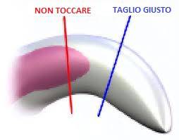 Il taglio deve essere effettuato dall’alto verso il basso e non trasversalmente, per evitare di spaccare l’unghia, per cui la lama deve essere perpendicolare all’unghia.