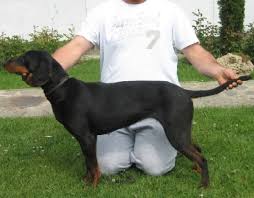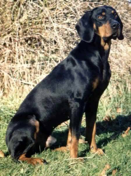 La coda inizia molto grossolanamente dalla parte dorsale e si assottiglia progressivamente dall’attaccatura verso l’estremità. È portata in forma di sciabola al di sotto della linea dorsale, coperta di pelo abbondante. Pelo: corto, denso, ruvido, poco spesso, lucido, ben disteso, liscio. Ha un sottopelo sviluppato e ben folto anche se a pelo raso. Colore: il colore di base è nero con macchie focate al di sotto degli occhi, del musello e nelle parti inferiori degli arti. Le macchie focate al di sotto degli occhi sono della grandezza di una nocciola, mentre quelle sulle parti laterali del musello si prolungano al massimo fino alla commessura delle labbra. Taglia: 44-54 cm; la taglia ideale per i maschi varia tra 49 e 50 cm, per le femmine tra 48 e 49 cm.