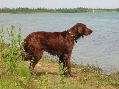 Il Setter irlandese iniziò ad essere allevato in Irlanda a uso venatorio. Il Setter Irlandese Rosso ha le stesse origini del “Setter Irlandese rosso-bianco”. Riconosciuto dalla FCI nel gruppo 7 sezione 2 cani da ferma. Sembra, inoltre, che i progenitori del setter irlandese siano stati gli stessi del setter inglese, entrambi derivanti dall’incrocio del setter con l’antico epagneul, il cosiddetto Bracco da quaglie. Nel 1882 venne fondato il Club “Irish Setter” che pubblicò lo Standard ufficiale.