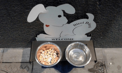 Le ciotole sono la parte importante. Dovremo lavarle tutti i giorni per evitare l’annidiarsi di insetti e sporcizia, dovremo usare dei materiali diversi in base alla stagione, es. in inverno meglio la ciotola di plastica per l’acqua perchè eviterà di ghiacciarsi subito e in estate meglio quella di ferro perchè terrà l’acqua più fresca, ovviamente da tenere rigorosamente all’ombra. Mettetela sempre in un luogo riparato, meglio un ripostiglio o in garage al quale lasciare la possibilità di accedere al cane. Meglio comunque utilizzare ciotole in metallo, più igieniche e non soggette a rotture per cristallizzazione come quelle in plastica. La ciotola del cibo invece non va lasciata a disposizione e viene proposta solo al momento del pasto come da normale rito alimentare.