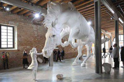 Dal materiale nobile del marmo e del bronzo, l’arte dell’avanguardia si è liberata, arrivando a utilizzare qualsiasi superficie o materiale anche nella scultura come il legno, il cesso, cemento o metallo. Il cavallo è diventato il soggetto principale: stilizzato, frammentato “a revocare” i resti di un antico impero greco romano, oppure gli viene dato una connotazione futurista ad esempio dall’artista Jason Decaires Taylor che ha realizzato i cavalli sul Tamigi, che svaniscono sotto l’acqua.