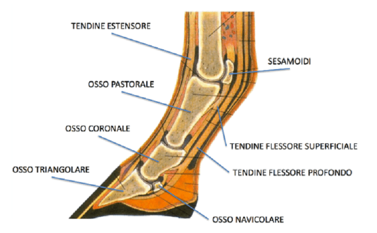 Lo zoccolo di un cavallo è suddiviso in tre parti: