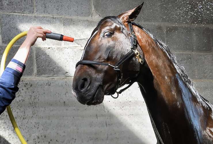 - Il cavallo deve essere bagnato iniziando dagli arti, poi raffreddando il collo e infine l’interno cosce. Dopodiché è possibile passare l’acqua su tutto il corpo.