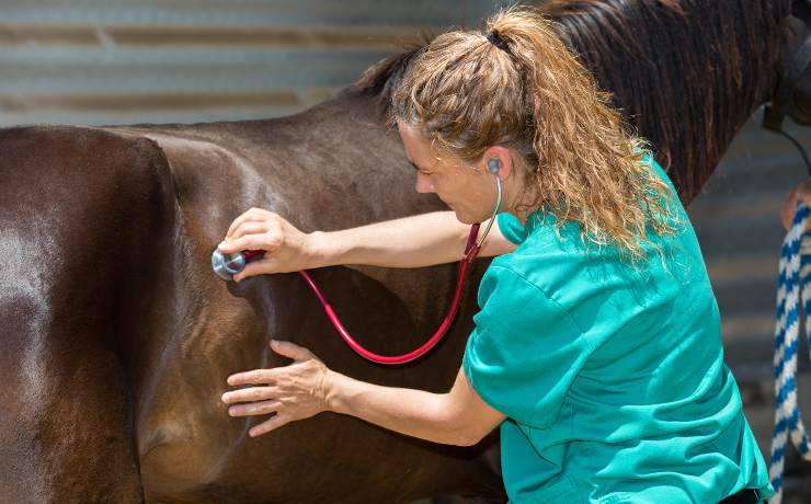 Il veterinario esaminerà il cavallo per verificare la presenza di sintomi come la difficoltà respiratoria e la tosse.