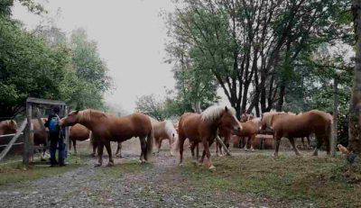 I cavalli del Bisbini sono stati spostati nella discrezione più assoluta. Al mattino presto, avvolto dalla nebbia e da un clima uggioso, il branco di aveglinesi ha percorso un tratto di strada asfaltata per poi raggiungere i sentieri di montagna, accompagnati dai volontari che hanno messo in sicurezza gli animali, guidandoli lungo il percorso.