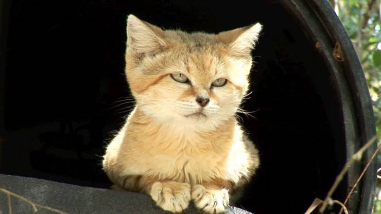 Con un’altezza di 24-30 centimetri, il gatto delle sabbie pesa 1-3 chilogrammi e si è evoluto con una serie perfetta di adattamenti che rendono questo animale in grado di affrontare le sfide della vita nel deserto in modo davvero unico. Questi animali del deserto vantano zampe imbottite speciali, coperte di peli lunghi e duri che proteggono i piedi di questi gatti dalla sabbia calda e aiutano anche a sostenere il loro peso tra i granelli mobili, impedendo loro di affondare.