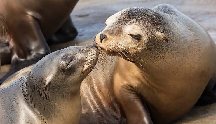 Gli occhi chiusi quasi a volersi estraniare dal mondo che li circonda per godersi appieno il bacio. Bellissime queste due foche, non credete?