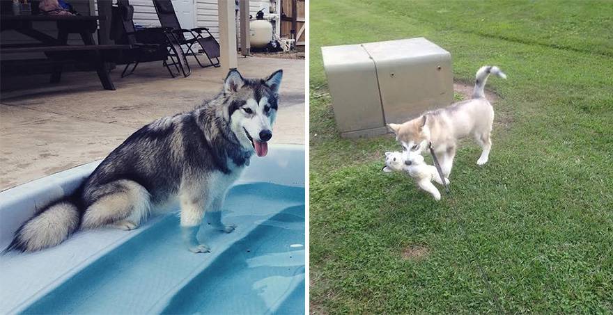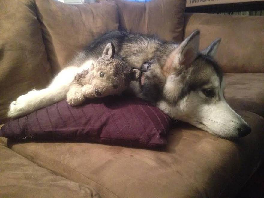 “Gli ho dato quell’animale in peluche e da quel momento non l’ha più lasciato. E ‘il suo bambino. Lo porta dappertutto in giro e dorme sempre con lui”, ha scritto la proprietaria del cane, condividendo le fotografie di Luca da cucciola e da grande con al fianco il suo giocattolo peloso.