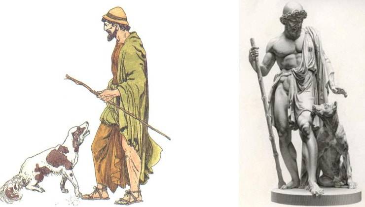 Solo il fedele compagno a quattro zampe dell’eroe greco descritto come ormai vecchio e acciaccato (“Ivi il buon cane, Di turpi zecche pien, corcato stava“) riconosce Ulisse.