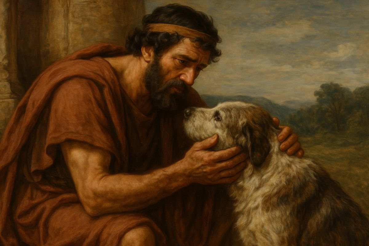 Nell’Odissea, il momento in cui Argo riconosce Ulisse non è solo commovente: è anche profondamente simbolico. Il cane, che rappresenta la lealtà assoluta e l’amore incondizionato, diventa la misura della disumanità che ha colpito Itaca durante l’assenza del re.