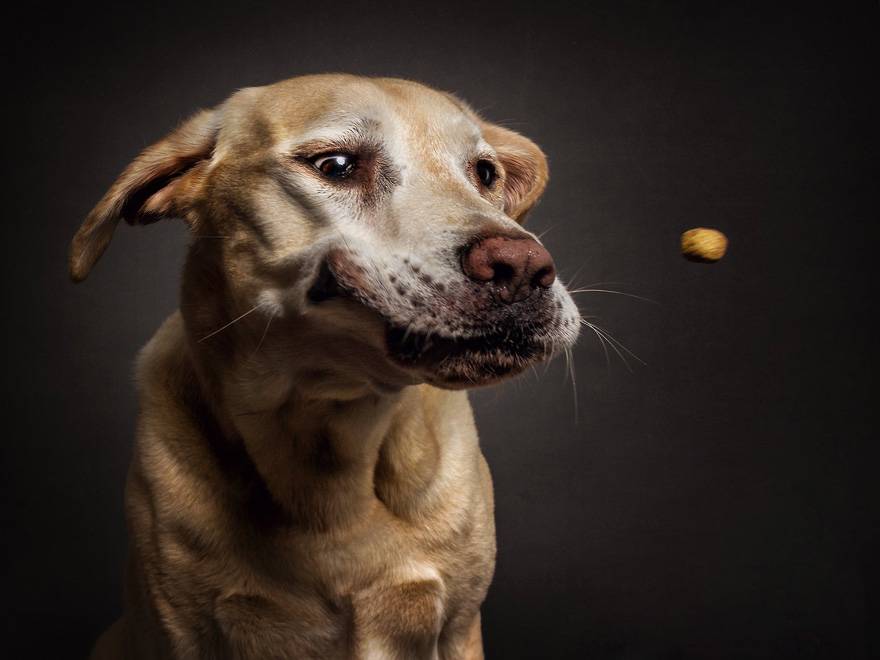 Il fotografo tedesco Christian Vieler di Waltrop, ha realizzato una simpatica serie riservate ai dei ritratti di cani che tentano di acchiappare al volo un bocconcino. Simpatici scatti con le espressioni dei cani più assurde, sfumando dall’eccitamento, a momenti di disillusione o confusione.
