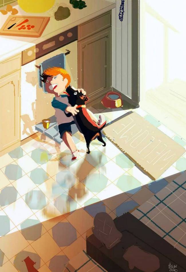 Momenti di conforto, di gioco, ma anche di condivisione e carezze. La serie d’illustrazioni mostra i sentimenti puri e incondizionati che nascono da questa rapporto per cui una persona può sempre contare, in ogni momento, sul suo peloso, sicuro del suo affetto che non tradirà mai.