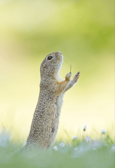 Tra le opere che hanno avuto la menzione della giuria, impossibile resistere allo scatto di Philip Marazzi che ha colto un tenero cucciolo di orso bianco che al fianco della madre alza una zampa in direzione dell’obiettivo come se volesse salutare il fotografo oppure la fotografia di Perdita Petzl con un adorabile cane delle praterie che tiene un filo di erba con le sue zampe, creando delle similitudini con un direttore di orchestra.