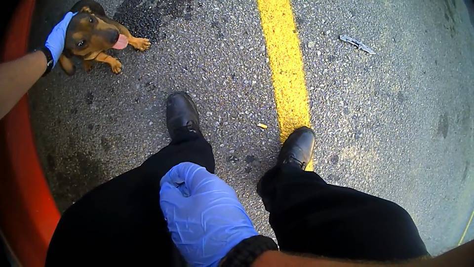 Gli agenti pensando che il cane fosse morto, hanno comunque voluto ridare la dignità a quel povero animale. Il sergente si è avvicinato e ha tagliato il guinzaglio. Il cane è precipitato sull’asfalto, restando immobile. Ma pochi istanti dopo, il povero animale ha iniziato a respirare e in una corsa contro il tempo, i due poliziotti hanno subito provveduto a somministrare dell’acqua al piccolo esemplare frastornato che si stava lentamente riprendendo.