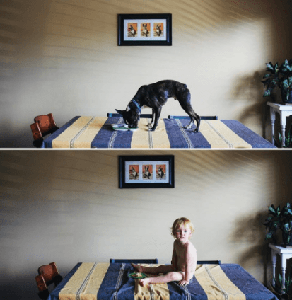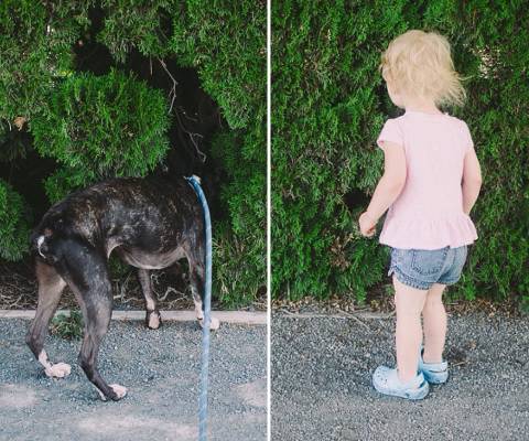 E così, ogni giorno, la Holland ha deciso d’immortalare la figlia e il cane nelle stesse pose, realizzando una bellissima e tenera serie fotografica intitolata “One dog. One baby.Who ore it better” (Un cane. Un bambino. Chi lo porta meglio), pubblicata su tumblr Handfulsotrouble.