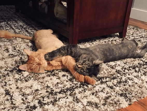Questi due teneri esemplari, da subito, hanno iniziato a dormire insieme, abbracciati, nonostante avessero a disposizione due cucce separate. Anche da adulti, Lili e Renley hanno continuato a stare insieme e neanche la cuccia, troppo piccola per contenere entrambi, li ha fermati. “Renley di solito è il capo e quando vuole le coccole le ottiene. Quando era piccolo ha preso a miagolare e cercare Lili quando non era nella stanza”, ha dichiarato il proprietario dei due gatti che ha deciso di raccontare la loro storia, pubblicando su Instagram delle fotografie dolcissime.