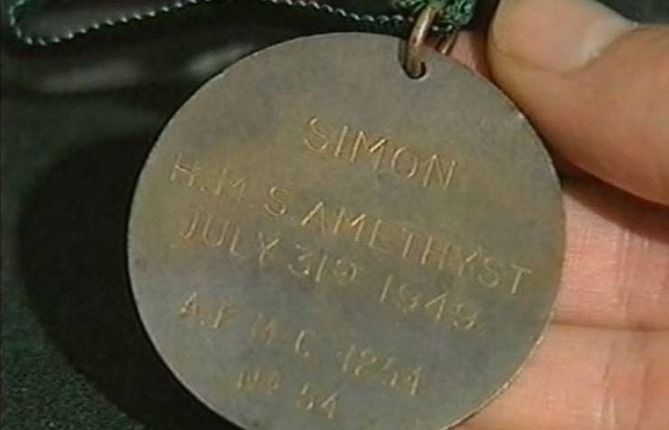 - la sua lapide recita “In memoria di Simon che prestò servizio sulla HMS Amethyst maggio 1948 — novembre 1949 onorato della Dickin Medal nell’agosto 1949 morì il 28 novembre 1949 a seguito dell’incidente dello Yangtze. Il suo coraggio fu dell’ordine più alto”;