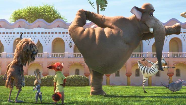 La coniglietta agente di Polizia, Judy Hopps, e Nick Wilde, una scaltra volpe rossa esperta nelle truffe, sono alla ricerca della lontra Emmitt, il quattordicesimo caso di predatore scomparso a Zootropolis. Nel corso delle ricerche i due si imbattono in Yax, un illuminato e flemmatico yak, responsabile di un club di naturisti nel quale l’elefante Nangi tiene le lezioni di yoga, l’Oasi di Mystic Springs. La scena è divertentissima.
