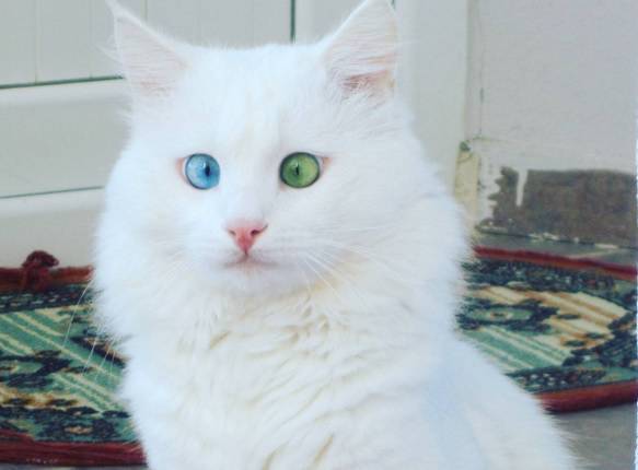 Alos ha gli occhi con colori diversi di un’intensità rara e cristallini: uno blu ghiaccio e l’altro verde acqua. Si tratta di un esemplare di razza turca Van originaria del Lago di Van, famoso per il mantello bianco, con coda colorata e macchie di colore sulla fronte. In generale si tratta di una razza che presenta nella maggior parte dei casi l’iridis heterochromia ovvero che conferisce due tipi di colore agli occhi, a causa di un eccesso o una mancanza di melanina. Di norma i cuccioli nascono con gli occhi azzurri e tra le 3 e 7 settimane di vita, la melanina dell’iride potrebbe modificarsi e cambiare colorazione agli occhi.