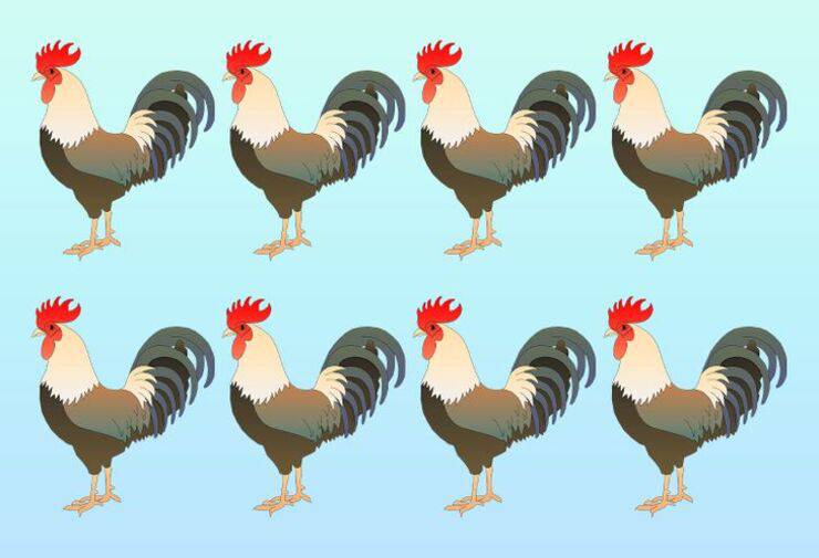 Mettetevi alla prova avviate il vostro cronometro, osservate attentamente e cercate di trovare l’unico gallo diverso da tutti gli altri .