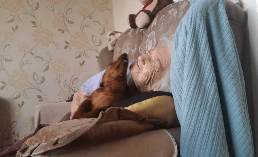 A quanto pare non appena la donna si trova a contatto con l’animale, un adorabile bassotto di 8 mesi di nome Orla, smette di fare quello in cui era impegnata e si dedica anima e corpo alla relazione, iniziando a giocare: “È come se le facesse dimenticare i suoi problemi e le sue sofferenze”, ha commentato il nipote, condividendo una serie molto commovente della nonna con il cane.